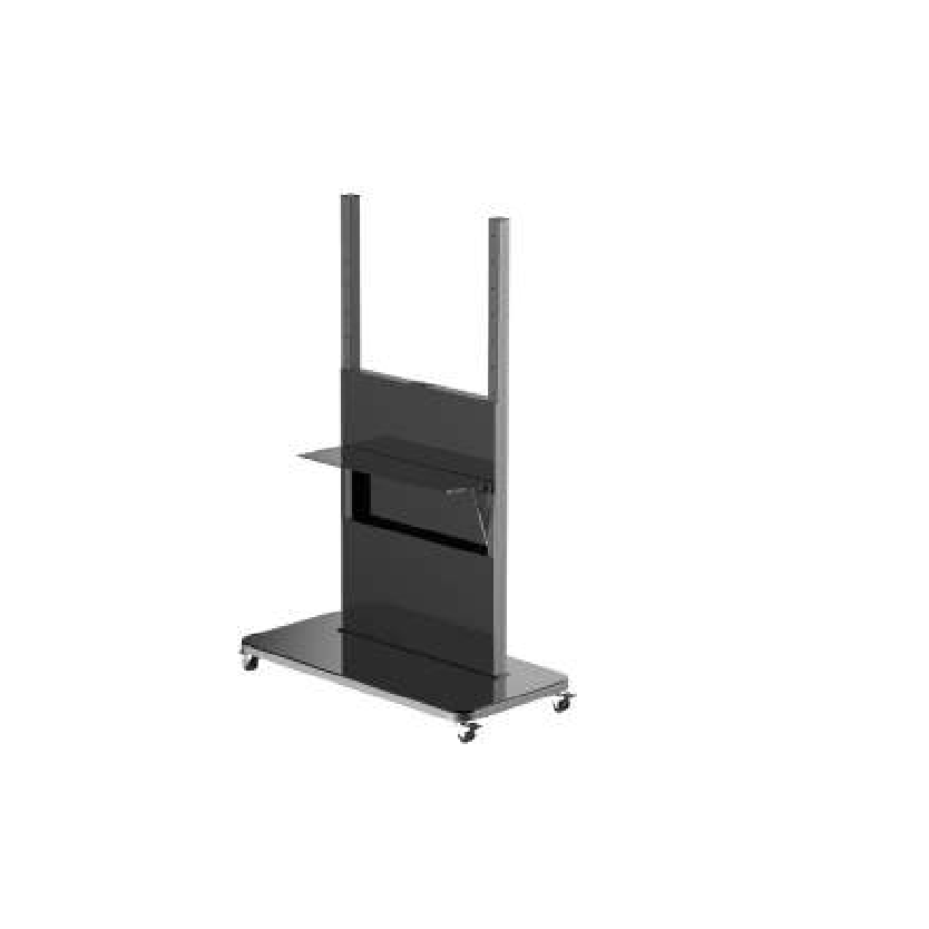 Este modelo es compatible con una amplia gama de tamaños, desde pantallas de 55 hasta 86 pulgadas, soportando un peso máximo de 100 kg. Cuenta con un sistema de altura ajustable de hasta 350 mm, lo que permite adaptar la visibilidad del contenido según el tipo de audiencia o el tamaño de la sala.